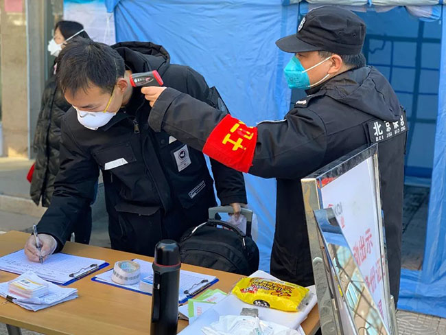 随着返京人员的增多,首开物业在前一阶段各项防控措施的基础上,继续严格落实小区封闭管理,对出入小区人员加强测温登记和出入证核查工作。特别加强对返京人员的询问登记,详细了解返京路线、是否有过疫情严重地区接触史等信息,并发放宣传材料告知要居家隔离观察14天,每日测量体温,密切关注自身健康,筑牢疫情防控的第一道防线。