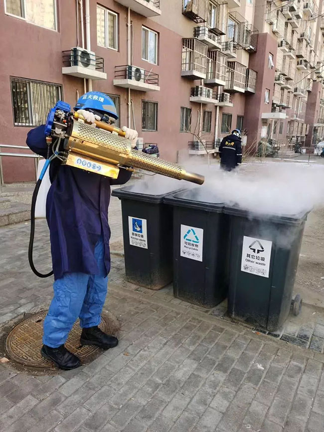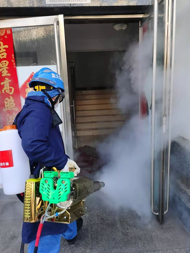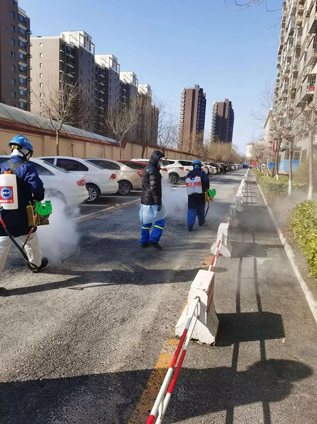 为了缓解物业压力,卢沟桥乡政府联系蓝天救援队到首开物业旗下亿方物业一分公司同馨家园项目,进行专业化、集中化、全方位消杀,确保小区安全。