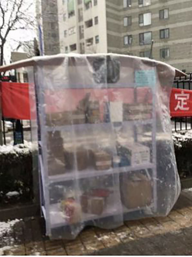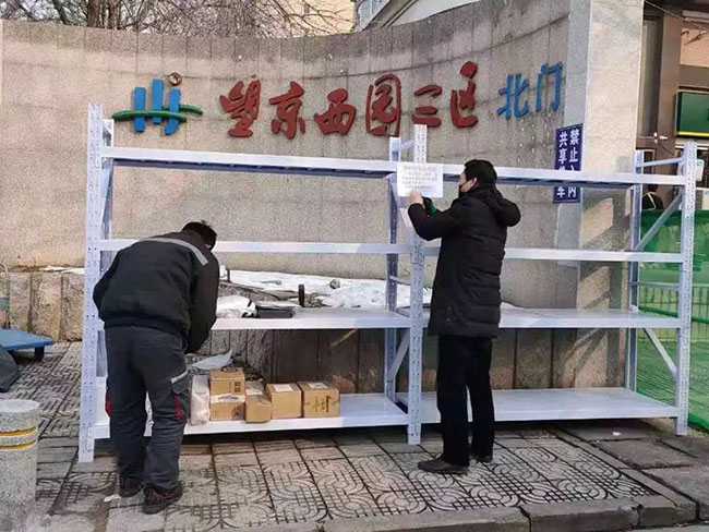 由于小区实行了封闭管理,快递员无法进入小区,只能将业主快递堆放在小区门口,既不美观也不卫生,首开物业旗下望京物业紧急采购了货架,组织各项目员工动手组装,码放业主快递,定时消毒,方便业主错峰领取快递,避免人员密集交叉感染。