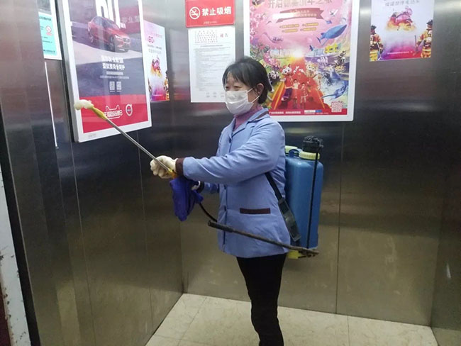 “在疫情发生之初,我们就启动了卫生管理一级防范,对重点区域增频消毒。”物业项目经理倪玲介绍到,金科东方水榭不光对公共区域大堂、车库、垃圾箱、电梯轿厢等业主高频接触区域每天消毒两次,对儿童游乐设施、公共健身器材、天台地面等疫情期间业主使用频次极低的设施和场所也进行着全方位的消毒。