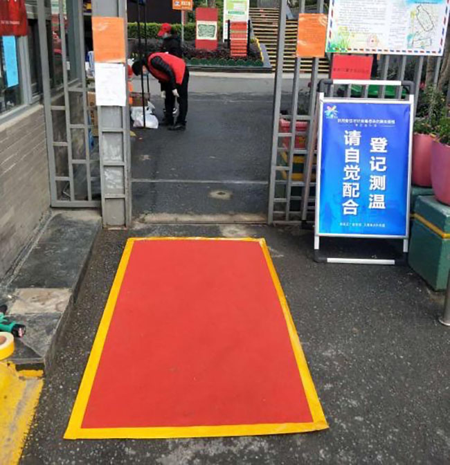 花了半天时间制作出消毒地垫后,倪玲便组织员工为小区的进口处、单元楼大门和物业服务中心加装这一新的消毒设备。刚加装完毕,便有业主迫不及待地在消毒地垫上用力踩了踩,并表示有了这个设备回家进门也能更安心。