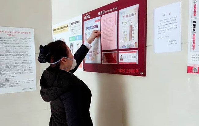 安排专人负责从各种渠道购买测温仪;对小区非主要出入口进行封闭,各组团仅保留一个出入口;按双人双岗标准在各门岗进行测温和进出登记;核验业主出门条情况;上门核查异地返回业主体温……在疫情发生的第一时间,金科东方水榭便按照疫情防控要求和小区实际情况进行着工作铺排。