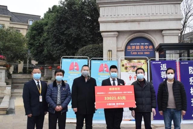 2月20日上午,成都复地御香山举行了“抗击疫情爱心捐赠仪式”,华阳街道广福社区书记钱坤、御香山业委会主任李真、高地城市服务产业集团总裁助理孔凡武及高地一线员工代表参与了捐赠仪式。137位业主捐赠总计33021.61元,由御香山业委会主任李真作为业主代表,交到了高地物业一线员工的手里,为身处前线的物业一线员工送去温暖。