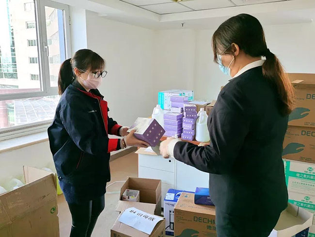 为解决各项目部在口罩、测温枪、消毒液、防护服、护目镜等防疫物资方面存在的购买难题,尹芳同志组织摸清公司库存家底,全面统计防疫一线需求,全盘统筹物资资源的分配与调配,有效保障了项目一线的“战“疫”需要。