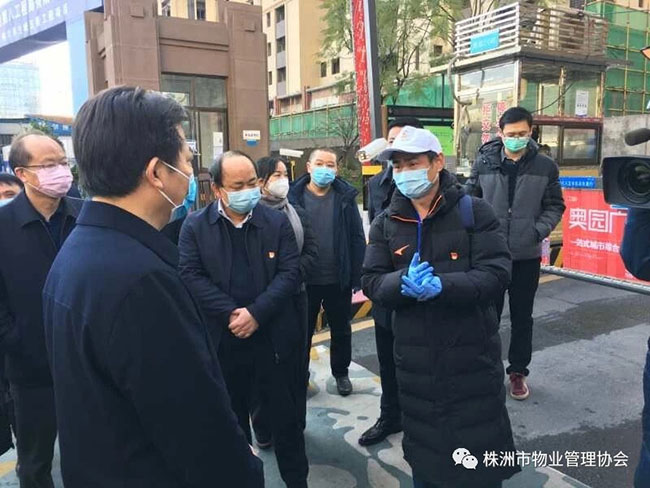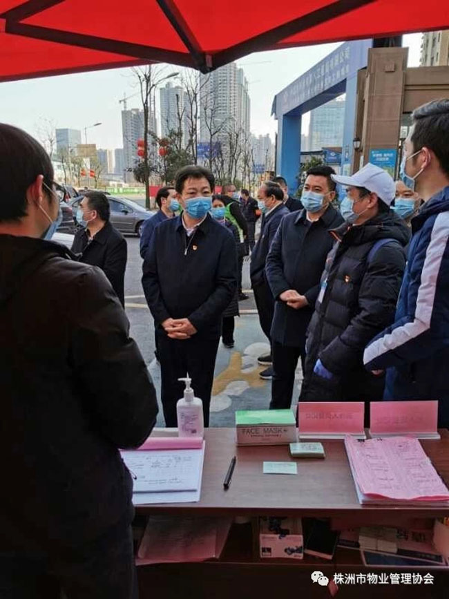 株洲市物业管理协会副会长、奥园物业华中区总经理齐鹏超向毛腾飞书记介绍了株洲奥园物业公司疫情防控的“七查”操作:籍贯查验;身份查验;温度查验;轨迹查验;出入证查验;可疑接触史查验;健康申报记录查验。毛书记在现场看到物业工作人员站立小区门口,认真地为出入区的所有人员进行测温,毛书记说:对进入小区人员测体温是对业主负责,对出小区的人员测体温,是对株洲人民负责。我们一定要对社会负责,对国家负责,做到对出入小区的人员都测体温。