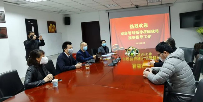 2020年2月21日上午,福州市住房保障和房产管理局副局长顾巍、物业处处长陈晖、晋安区房管局领导等一行莅临伯恩集团总公司,检查和指导疫情防控工作。伯恩集团总经理何祥文等陪同介绍和分享我司防疫具体情况。