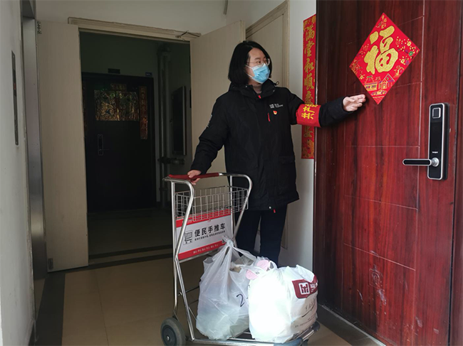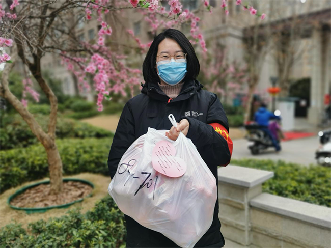 小区实行封闭管理,几千人人的小区内,大部分家庭的生活物质都已经很紧缺,甚至有人在群里呼叫断粮的危险。大家都感到惊恐而无助。高培红带领党员先锋队的党员和物业人员开展代购活动,她又把给居家隔离观察人员、老弱病残等特殊群体居民送菜送生活用品的活儿都主动揽到自己手上,同事们都劝她,你也是两个孩子的母亲,大家轮流去送吧。她谢绝了大家的好意,“大家都有家,这个时候我不冲在前面,我不会安心。”