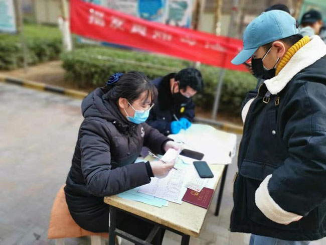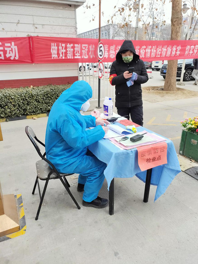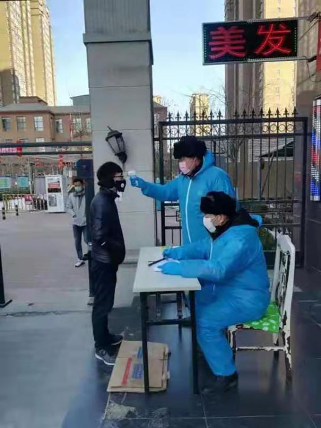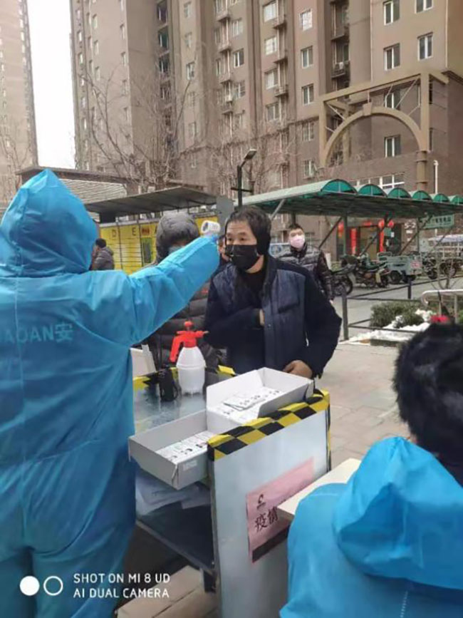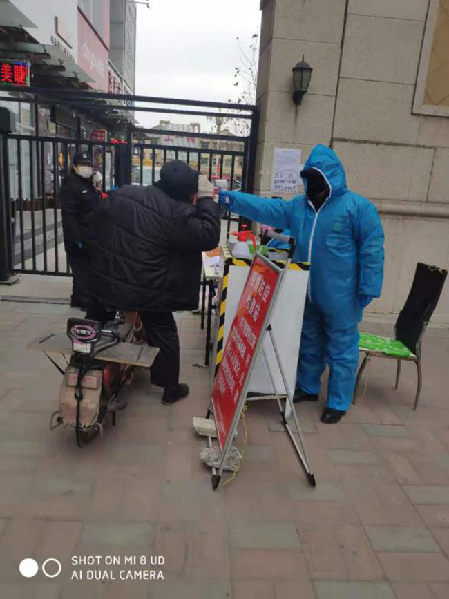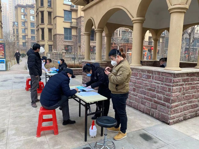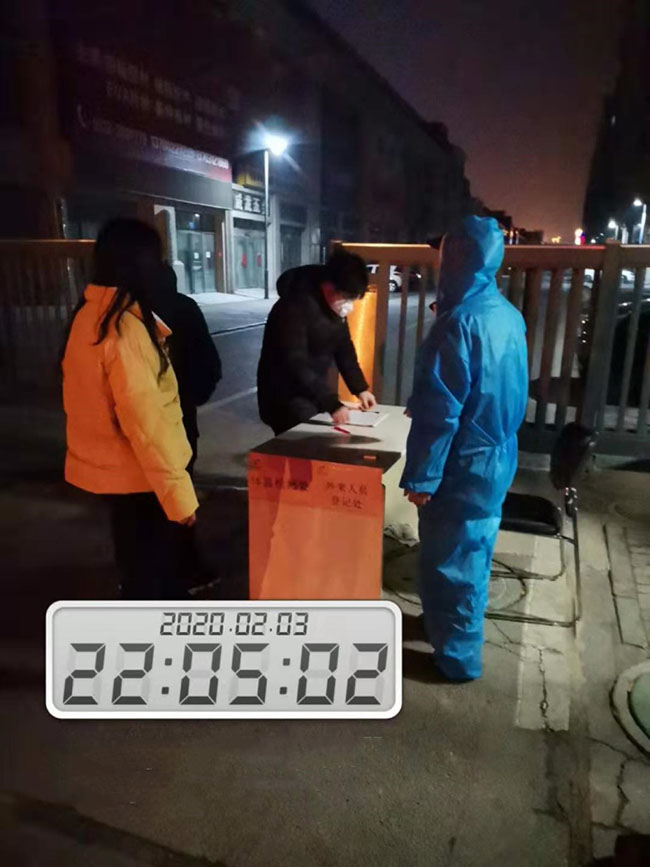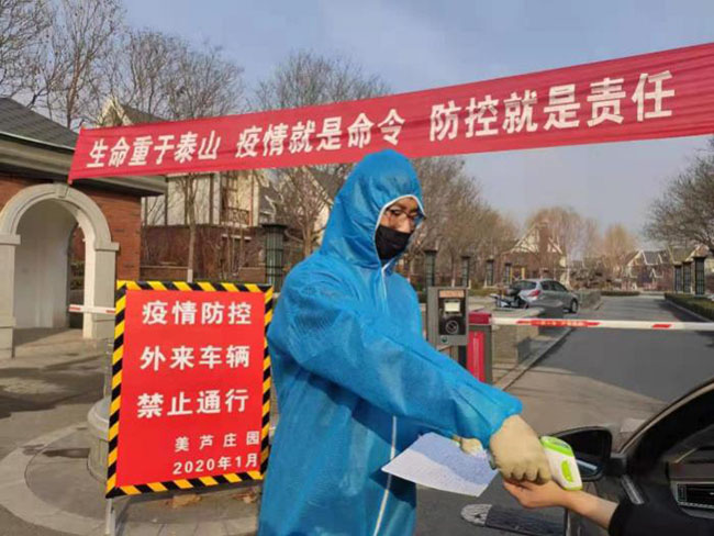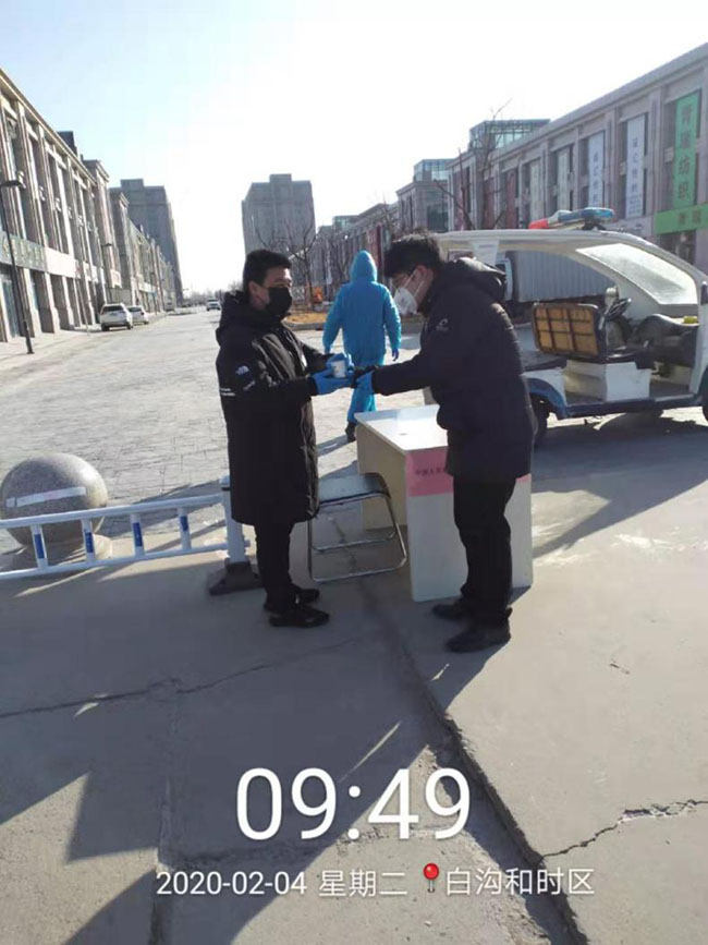 白沟万和城项目接到防控疫情的通知后,秩序部立即组织对小区门口进行封闭并协助客服做好宣传工作。因疫情导致封村,为防止疫情传播秩序部值班人员离家后就不能返回,他们一干就是480小时,累计核实登记人员7969人次。