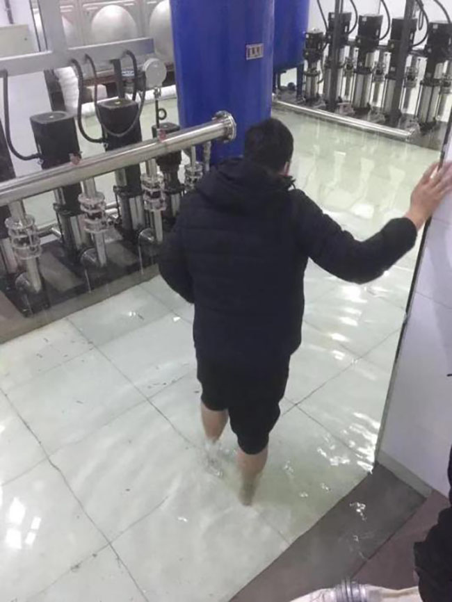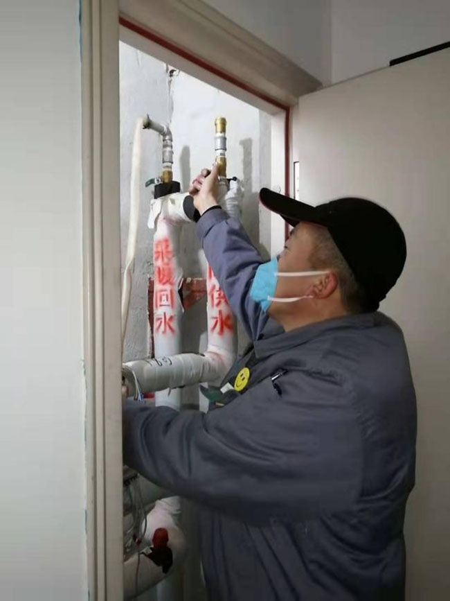 由于疫情影响,高碑店迎宾路壹号工程技工梁志永舍弃了与家人团聚的时光,把家中能吃的,能用的都拿到项目上与大家分享,与大家共甘苦,项目上发生故障他总是第一时间赶赴现场解决。一次正值寒冬腊月,项目生活水泵房泡水,为了不影响业主们正常用水,梁师傅不畏严寒,赤脚下到生活泵房进行排查工作,及时解决了问题。
