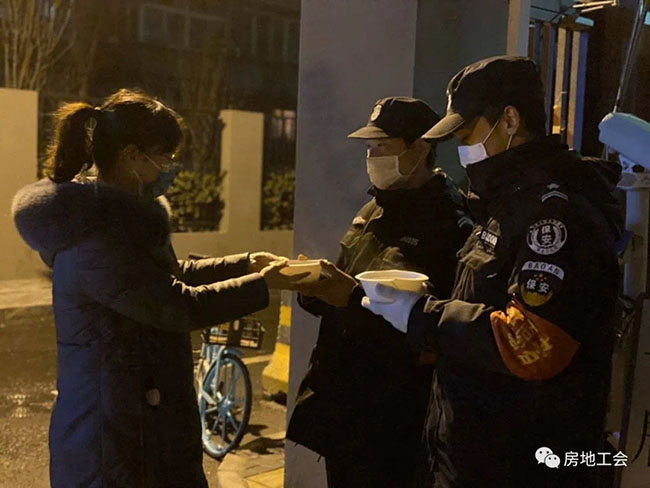 2月9日,正值元宵节,王新带着一早采购的汤圆、饺子到物业站点慰问,并给值守的员工送上热腾腾的汤圆和饺子,久违了的欢快气氛,驱散了平日里的凝重,员工们也表示,再苦再累也会坚持到底。