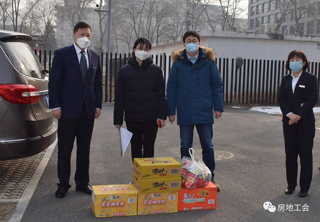 2月9日,她带着班子成员,将公司工会下拨的防控专项资金购买成方便面、方便粥、洗手液,逐一送到各项目部。