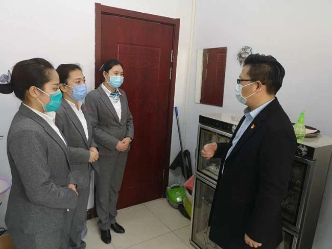 公司在管项目中共河北省委党校南北两院为避免人员交叉感染,实行校区彻底封闭管理。为配合校方落实防疫工作各项要求,第六党支部书记田佳召开会议部署工作安排,党员张树青、金蕾主动提出要在整个封校期间全程坚守岗位,领导现场员工做好疫情期间的各项防疫工作,至今已持续在岗工作近40天。