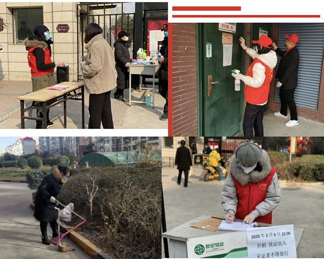 习近平总书记在指导新型冠状病毒肺炎疫情防控工作时的讲话指出:社区是疫情联防联控的第一线,也是外防输入内防扩散最有效的防线。公司在管项目发源小区和十号院小区共有2600多户业主,疫情当前,二支部党员许凤和三支部党员李艳伟,带领各自物业管理处员工,设立体温监测点,严格测量体温、业主排查、公区消毒等工作,禁止外来人员及车辆进入,做好人员管理和车辆流动,种种防疫工作赢得了业主对我们的信任和支持,很多业主送来了口罩、洗手液等防护物资并叮嘱我们做好防护。