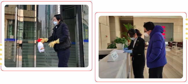 第二支部书记李韦考作为交行项目负责人,她每天早来晚走,做好甲方进出人员登记、部署区域消毒、检查工程设施设备安全运行,全面保证业主方办公环境的安全。同时非常关注员工的身体健康,召开视频工作会,强调员工上岗前的自我防护,多形式进行防疫知识的培训。在她的带领下,交行物业管理处始终保持强大的战斗力,以昂扬的斗志积极投入战胜疫情的工作中。