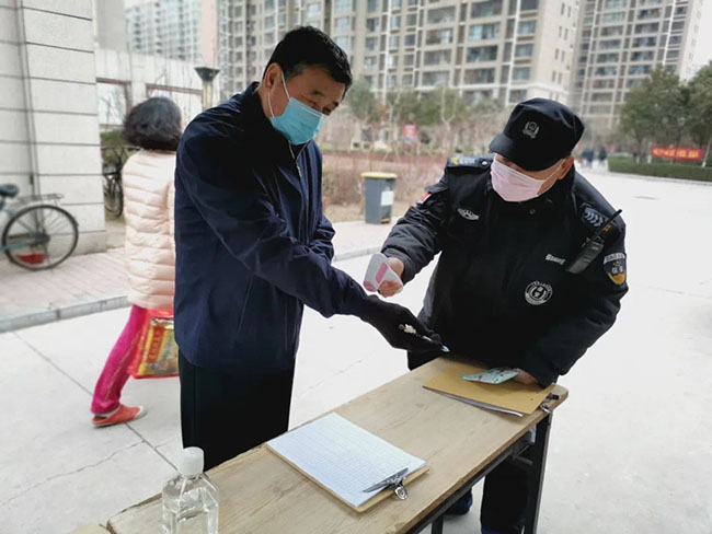 “您体温36.1度,正常。麻烦您出示一下出入证,给您做个登记。”