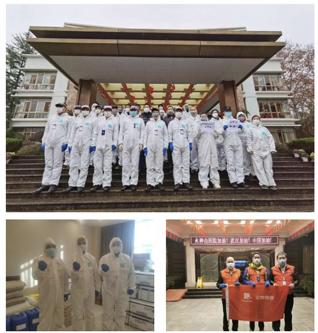 除夕当天,在接到火神山招募志愿者的信息后,以贾鑫等人为代表的金地物业人毫不犹豫第一时间报名参加,他们冒着被感染的风险,离别家人奔赴前线与病毒作战,谱写了一曲共抗疫情的赞歌。