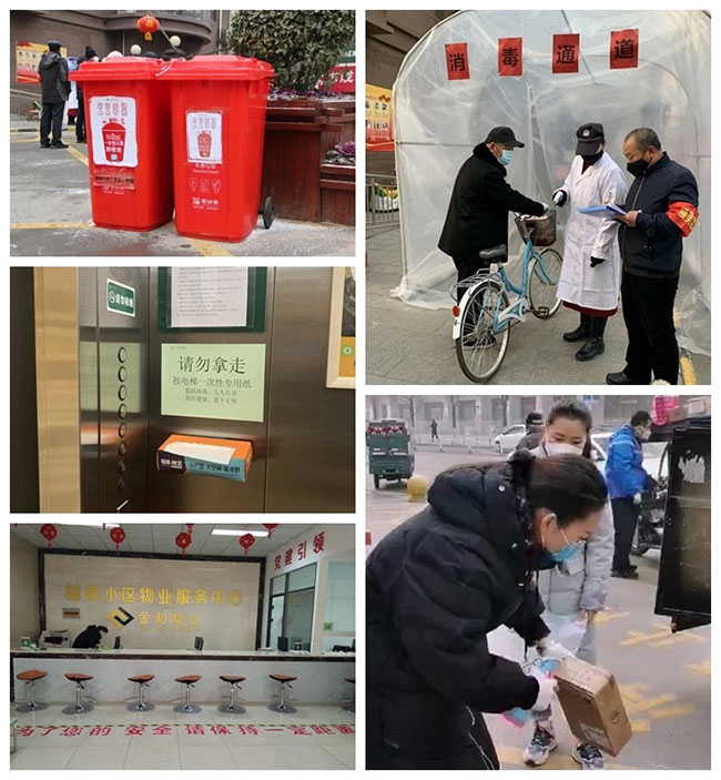 这个冬天很冷,不少人都响应国家号召,“猫”在家里,而我们物业人员及福美“抗疫”志愿者们却冲在防控前线,尽最大的努力为业主保障安全。为了防控病毒进入社区,物业工作人员时刻坚守岗位,加强人员进出社区管控。除日常园区定时消毒、体温检测登记外,金和物业在管各项目的园区出入口均设立了“消毒通道”,将病毒隔离在外;所有进入园区的车辆物业工作人员都要对其检测登记、消毒后方可驶入社区;居民带入园区的物品均进行消毒后携入,严格保障社区的安全;为防止二次污染,园区内专门设立快递包装及一次性口罩回收桶,物业服务中心每日定时消毒并收集处理;在电梯内增设电梯按键一次性专用纸,减少接触传染;物业服务中心门口增设“消毒区”为办理业务的业户进行消毒;同时,物业管家加班加点对居民进行定期电话访问,了解居民情况、排查可疑人员;对于外出归来居家隔离的业主,物业工作人员为他们送去生活必需品,将温暖与贴心一同送去......暖心服务让业主深切地感受到浓浓的爱意,让居民们心里知道,金和物业时时刻刻与大家同在。