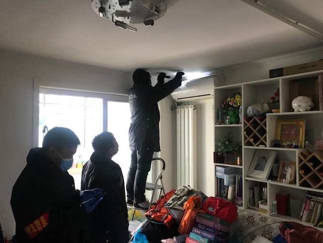 “我一进门就看见那只蝙蝠了,一个脑袋漏在空调外面,看见我们来了它还把头缩进去了。”这时王文亮已经带好了三层手套和两层口罩,又借来了业主家的梯子,左手持手电,右手垫了一块抹布,慢慢向空调靠近。