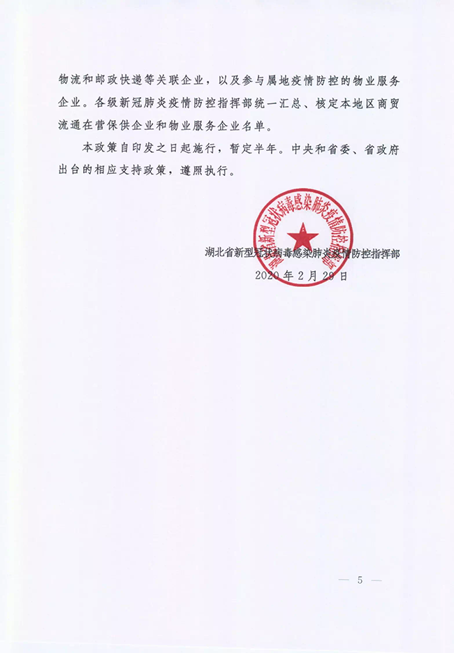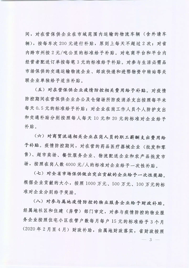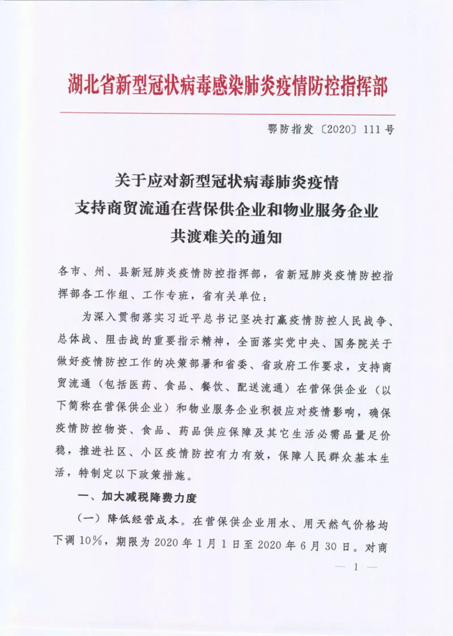 湖北省:对参与防疫的物业服务企业给予每月每户15元等补贴
