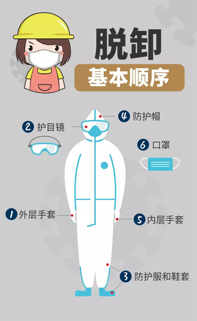 脱个人防护用品动作要慢,脱的场所要保障安全,每个步骤后都需手卫生。所有防护装备全部脱完后再次洗手、手消毒。