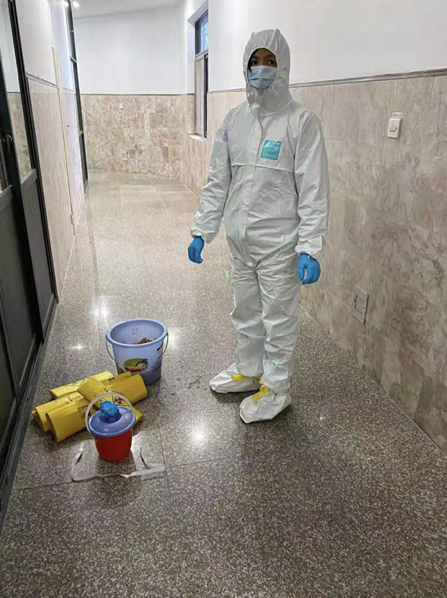 1月21日,奉化区人民医院发出第一道指令,启用感染科三楼隔离病房。疫情就是命令,捷达物业人民医院项目经理夏雪芳立即组织员工投入到紧张的工作中,她召集了全体轮休人员,一声令下,员工们在半个小时后全部到达指定位置,对所有病房进行彻底清洁及仔细消毒。晚上10:00,看着一间间干净的病房,她的心里长长地舒了一口气。