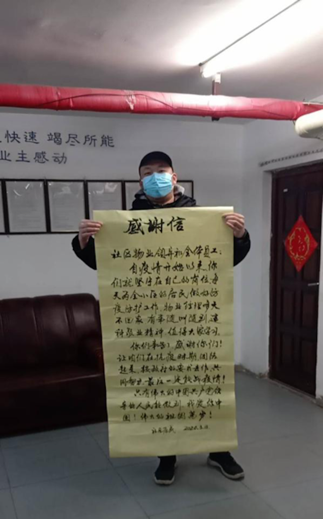 40余天来,公司各项目积极宣传防疫知识,提醒业主和住户坚持勤洗手、戴口罩、常通风、不串门、不扎堆、不聚餐、不信谣、不传谣;他们肩上扛起40斤重的消毒喷雾器,对小区的每一个角落反复彻底消杀;他们在人手严重短缺的情况下,努力保障业主和住户的基本生活服务需求不受影响;他们24小时坚守岗位,测查体温、检查出入证、核对信息,坚决不放进任何可疑人员,不留下任何安全隐患,彻底把好小区“健康门”。他们在一些琐碎却重要的小事上恪尽职守,护卫着业主和住户的健康与安全。正是他们的辛勤付出,使得业主和住户“宅在家中抗疫”成为可能。寒风中,他们伫立在小区门口,冻得瑟瑟发抖;指责中,他们隐忍,即便泪水在眼眶中打转,依然坚持着拿起测温枪……一幕幕场景让我们铭记在心,他们用自己平凡的双肩诠释着“国家有难,匹夫有责”“业主有需,我尽全力”的工作职责,他们身上同样有新时代雷锋精神的影子。
