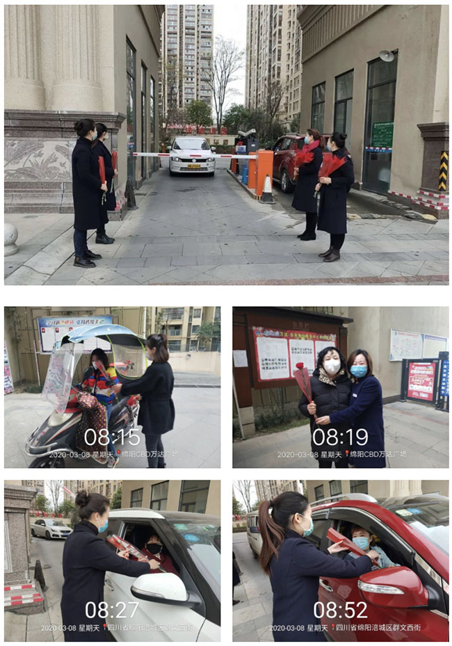 今日,迎接我们的是第110个“三八”国际劳动妇女节。都说女人如花,曼妙美丽,永安物业在管服务项目—四川绵阳经开万达华府物业服务中心客服妹子们一大早就手捧着鲜花,在小区的出入口为女业主们献上娇艳欲滴的鲜花,同时致以节日的美好祝福!收到鲜花的女神们纷纷表示在这疫情期间还能收到鲜花,让她们倍感惊喜,物业真用心,太感谢了!连忙在业主群和朋友圈“秀幸福”。您知道吗,您的一个点赞、一句感谢,都让永安物业人激动不已,您的肯定给了我们巨大的能量,让我们离争做美好生活服务商的愿景又近了一步!