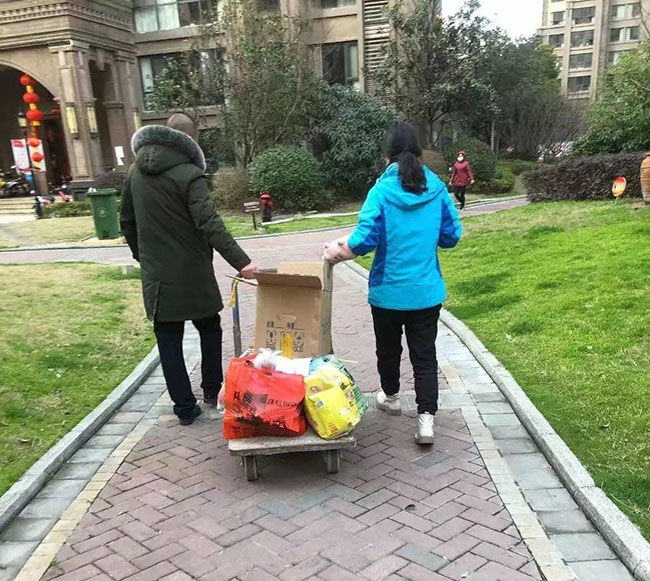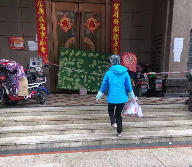 2月11日,永安物业荆州分公司万达华府A.B.C.区荆州项目物业服务中心接到社区通知,B1-2单元有1户业主已被确诊患上了新冠肺炎,当大家都神经紧绷,一度陷入紧张时,物业服务中心团队立即配合社区第一时间张贴通知,封闭B1-2单元大门,次日清早对B1-2楼道逐层消毒,还积极配合社区工作,为小区业主免费发放蔬菜6次,每天按楼栋单元分组,敲门挨家挨户给业主测量体温,排查了解每户家中人员数量、健康情况等信息,对于不方便下楼的业主进行“上门代购服务”,为被隔离的业主提供生活物资配送服务,每天客服部员工都会收集业主采购需求,并汇总分类、集中采购,最后分户送货,常常一趟下来需要两三个小时。