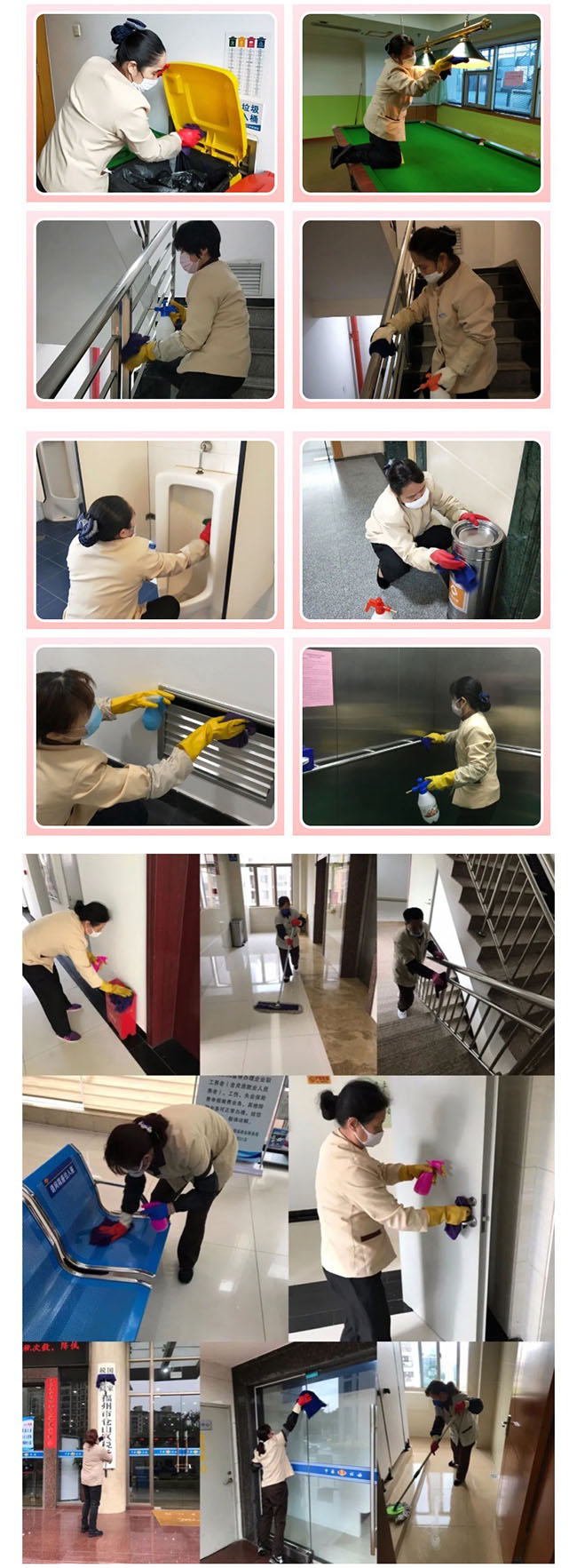 疾风知草劲,烈火见真金。疫情期间的每一天,她都没有缺席,还主动给自己加大工作量,天还没亮就早早到达项目,带上手套,消毒好抹布,给喷壶灌满配比严格的消毒液。每日不仅对小区主干道、大堂、楼道、电梯及其按钮等业主高频接触的重点部位加大消毒频次......只要是业主可能会用肢体接触到的,她都会反复擦拭,消毒水一喷完她就快马加鞭赶去添加,她把小区需要保洁的每一寸一毫都当做自己家来对待。除了短暂的吃饭时间外,她每天都在为了消毒灭菌“争分夺秒”“精益求精”,为了小区垃圾管理“斤斤计较”“常抓不懈”。项目经理看在眼里,不禁泪水湿润了眼角:“这个刘姐身体一直不好,但是总是来的最早走的最晚,做事情很细致,我们经常叫她早点回去休息,她都不肯,一天要跑上跑下加几十趟消毒水,擦拭各个公共部位一丝不苟,下班手都抬不起来是家常便饭。” 在刘姐的感染下,其他保洁员也纷纷投入百分之百的热情共克时艰!刘玉兰真正诠释了兢兢业业,守土有责的深层含义。