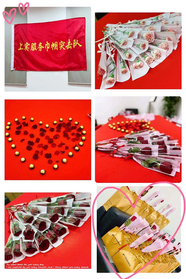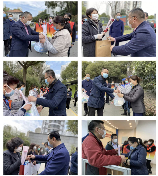 3月8日下午,上实发展党委副书记、纪委书记陆勇,上实发展物业板块联合党委副书记、董事长朱云飞,联合党委副书记、副总经理沈宏庆,副总经理、工会主席李其龙,副总经理范建新、丁云风、田明利、李卫民等领导来到万源御溪等项目现场,向抗疫一线的上实服务女职工们送去节日的祝福以及来自“娘家人”的关爱和温暖。