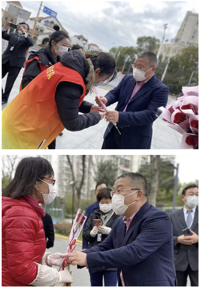 陆书记感谢她们一直以来对上实服务的付出,感谢她们放弃休假、放弃团聚,奋战在抗疫一线,嘱咐她们一定要做好防护,注意休息。