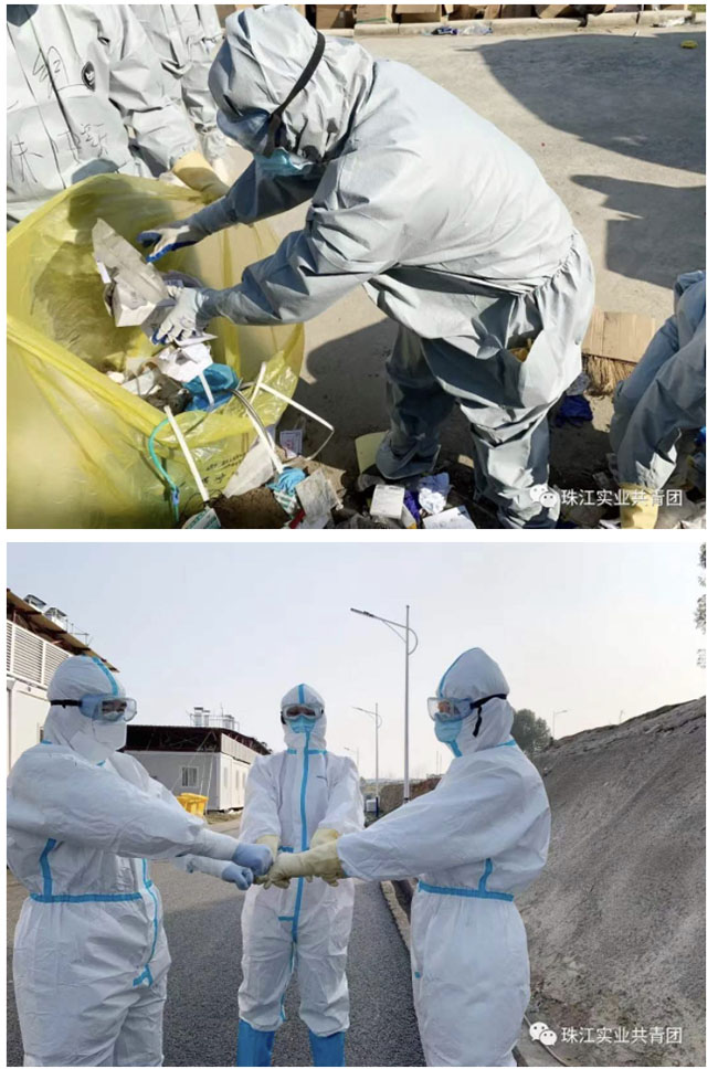 魏岳林脚踩了钉子、手泡84过敏,简单处理后继续投入工作;杨光博、赵阔在开四轮车下坡时,制动忽然失灵,为了不让垃圾桶掉落造成二次感染,两人硬是用脚把车刹停在斜坡,即使负伤也依然坚持到下班;二组组长朱安心每天总是第一个冲在前面,最后一个撤离出来;李增云、耿相良主动放弃轮休,始终与同事们奋战在“疫”线……这样的小事每天都在上演,队友们用实际行动兑现着请战书上的诺言,也无声地落入鲍雨薇的眼里,在年轻的心中生发出无限的勇气和力量来。