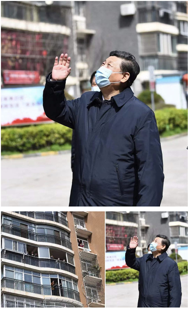 离开火神山医院,习近平来到东湖新城社区,实地察看社区卫生防疫、社区服务、群众生活保障等情况。疫情发生以来,社区累计确诊新冠肺炎患者32人,通过封闭式管控和实施网格化管理,半个多月来保持无新增确诊病例。见到总书记来了,在家隔离居住的居民纷纷从阳台和窗户向总书记挥手高声问好,习近平频频向大家挥手致意、表示慰问。