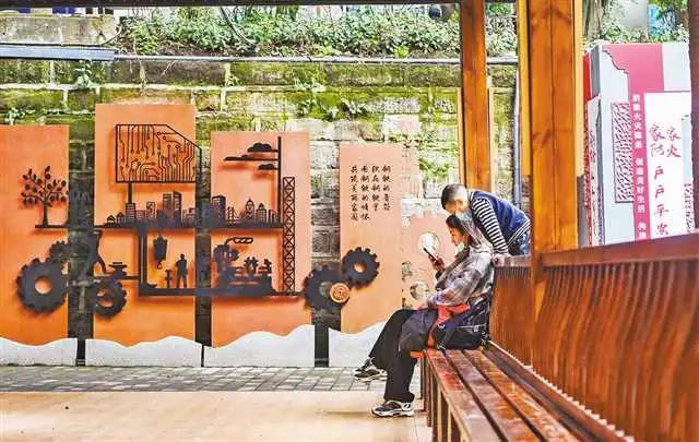 四月二日,重庆市渝中区双钢路小区,居民正在文化长廊里休闲。首席记者 龙帆 摄\视觉重庆