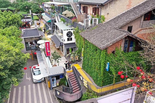 ▲ 4月22日拍摄的重庆江北区北仓文创街区(无人机照片)。新华社记者 刘潺 摄