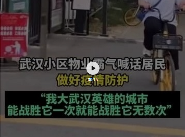 近日,湖北武汉一小区物业霸气喊话居民做好疫情防护 :“我大武汉英雄的城市,能战胜它一次就能战胜它无数次。”