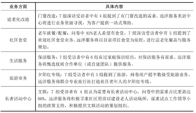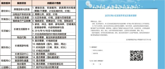 通过本次调研,远洋服务迅速调整了前期规划中的一些服务内容和开展服务的节奏安排,计划从刚需、高频、有潜力的业务先切入,后期逐步覆盖居家社区养老的全场景。