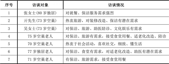 伴随着我国人口老龄化程度不断加深,住房和城乡建设部正在全国范围内积极推动“物业服务+养老服务”模式的试点工作。作为试点企业之一的远洋服务控股有限公司(以下简称“远洋服务”),正在积极探索贴近长者业主需求、可持续经营和发展的居家服务新模式。任何商业新模式的探索,都应该基于客户需求来开展。基于此,远洋服务因地制宜,在用户端开展了全面深入的需求调研工作,在北京远洋天地项目,采用问卷调研与深度访谈相结合的方式,对居家社区养老服务的需求进行了深入调研分析。调研集中对长者基础信息进行收集,并对企业拟推出的居住适老化改造、餐饮服务、生活服务、娱乐活动、公益服务等方面的服务进行需求验证。调研共获取有效问卷85份;同时,结合7场面向长者的深入访谈,进一步细化了长者居家养老的个性化需求,最终形成了针对远洋天地社区的精细化业务规划方案。远洋服务在此需求调研基础上,计划从刚需、高频、有经营持续性的业务切入,逐步完善“物业服务+养老服务”的全场景服务覆盖,探索一条既满足客户需求又能平衡企业良性经营需求的发展之路。期待本文的研究工作能够为相关企业的商业模式实践与系列研究提供一定参考。