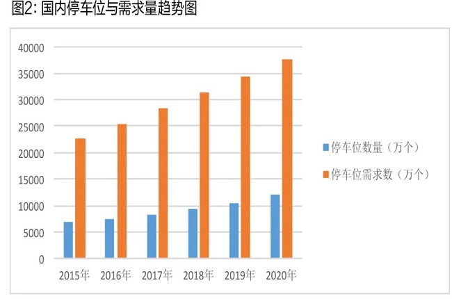 近年来,随着我国经济持续快速的发展,机动车保有量快速增长。据国家统计局《中华人民共和国2019年国民经济与社会发展统计公报》公布数据显示,截至2019年末,全国汽车保有量达到了2.62亿辆,比上一年增加0.21亿辆;2020年全国汽车保有量已达2.8亿辆。随着汽车保有量的不断增长,停车行业呈现繁荣景象,停车位数量保持着高速增长。2015年我国停车位数量为6935万个,而到2019年末,我国停车位数量就达到10710万个,2015-2019年停车位数量增长了3775万个,年平均增长率达到13.6%