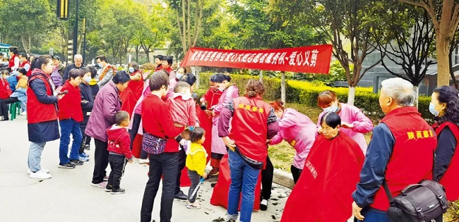 恒基·碧翠锦华项目将党建引领融入到日常服务中,把“红色物业”活动与党性教育、民俗节日、文化体育等活动结合起来。图为红色服务队之爱心义剪活动