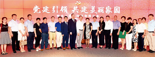 2018年,上海物业服务企业党组织联合举办“党建引领共建美好家园”现场启动会