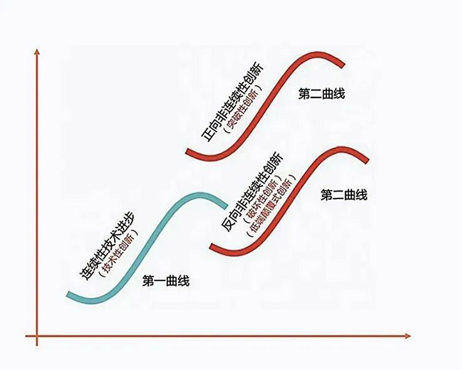 第二曲线是寻找成长加速度、切换新业务、寻找新空间的过程。正如加里·哈默所言,如果我们的企业整天只是在追求渐进式发展,而竞争对手则在塑造新的行业,企业就如同大难临头时却歌舞升平一样危险。第二曲线一定意味着颠覆式创新,企业在满足越来越挑剔的客户需求的过程中,与其更好,不如不同。