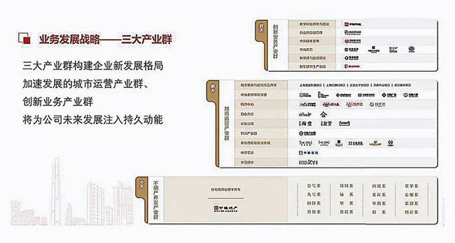 以中海为例,在第二点上,其早在2018年业绩发布会上就提出了今天、明天、后天战略业务结构。在做好今天的业务住宅开发的基础上;布局明天的业务城市更新与区域综合开发、以及中海系甲级写字楼、购物中心、星级酒店的投资开发等;试水后天的业务数字科技研发与投资、新基建与能源投资、新型建材生产制造等。