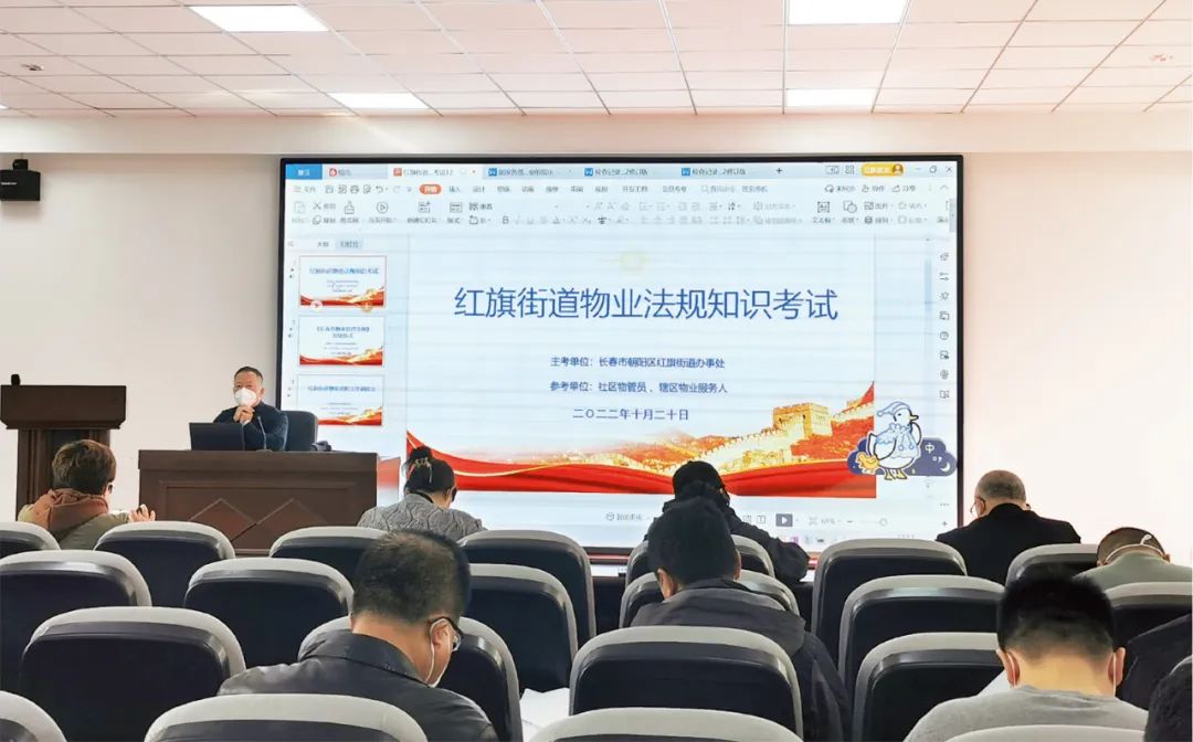 红旗街道办事处进 一步加强业务人员的培训力度,重点学习关于物业管理方面的法律法规, 增强业务人员的专业水平。图为红旗街道办事处组织的“物业法规知识考试”正在进行中。