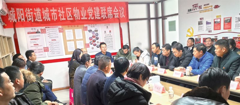 城阳街道每个季度召开一次城市社区物业党建联席会议,由城市社区书记、小区党支部书记,物业服务企业负责人、业委会主任等参加,通过筑牢组织基础、健全联动机制、压实联建责任等举措,着力提升人文生态幸福家园建设。