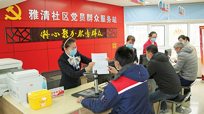 卓达物业建立党群联席会议,用“双向进入、交叉任职"机制,全面推进红色物业创建,构建“共建共治共享”社区治理新格局。图为卓达物业雅清苑社区党群服务站的日常工作场景。