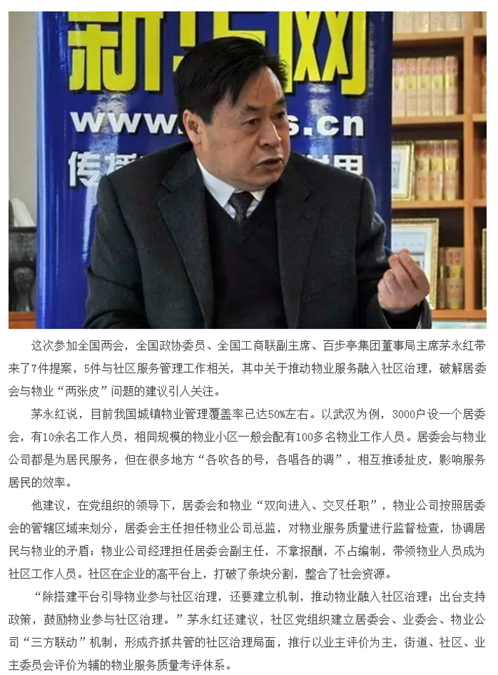 茅永红建议:推动物业服务融入社区治理体系
