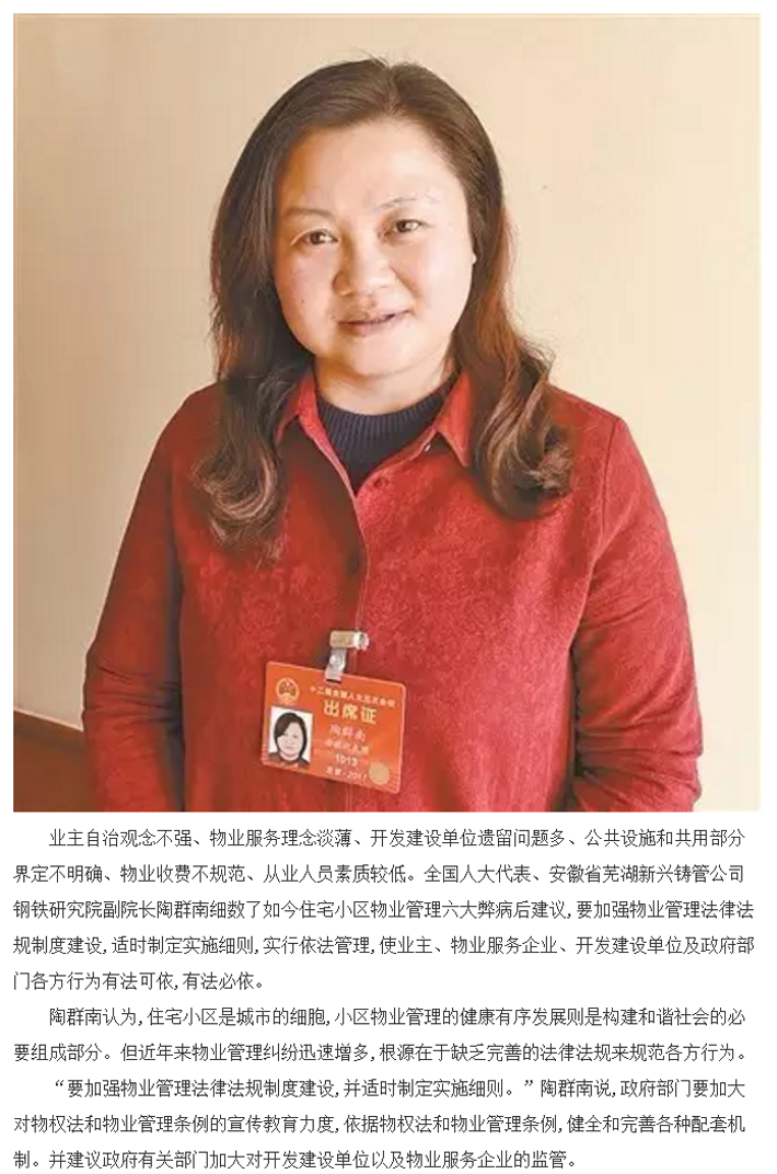 陶群南建议:加强物业管理法律法规制度建设
