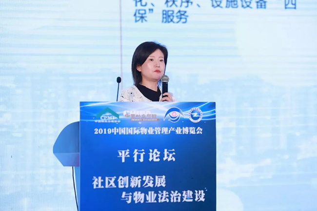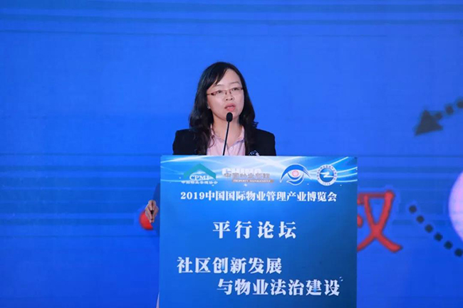 湖南师范大学法学教授、法学博士、博士生导师王彬辉作《物业企业参与社区治理的法治路径》的主题演讲,她表明物业企业参与社区治理主要的法治途径,第一,要物业企业在社区治理当中定好位;第二,物业企业要当好业主或者是业主大会的参谋,参与社区“软法”的制定;第三,物业企业在社区治理当中要行好权,杜绝不作为、乱作为的现象发生;第四,物业企业要接受国家政府的授权。