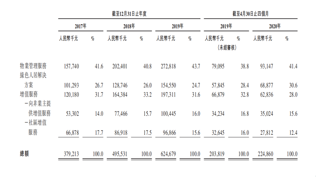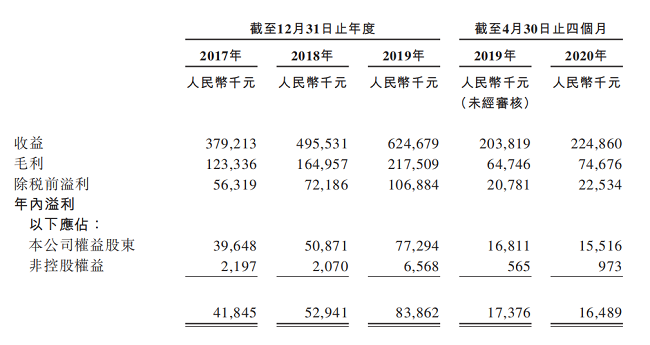 据招股书显示,2017年、2018年及2019年,第一服务收入为3.79亿元、4.95亿元及6.24亿元,复合年增长率为28.4%;利润分别为4184万元、5294万元及8386万元,复合年增长率41.6%。最新数据显示,截至2020430日的前四个月,第一服务实现营收2.25亿元,较去年同期同比增长10.29%,实现利润1648.9万元。